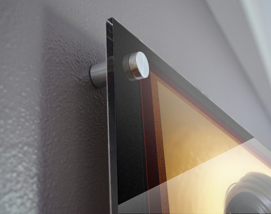Printed to the edge - Ready to hang - provided with 4 premium polished aluminum stand off ( wall screws and mounting hardware provided )