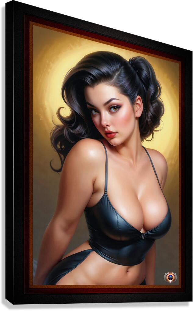 AN EXQUISITE RAVEN HAIR PINUP GIRL TEMPTRESS GORGEOUS AI CONCEPT ART BY XZENDOR7 XZENDOR7  Canvas Print