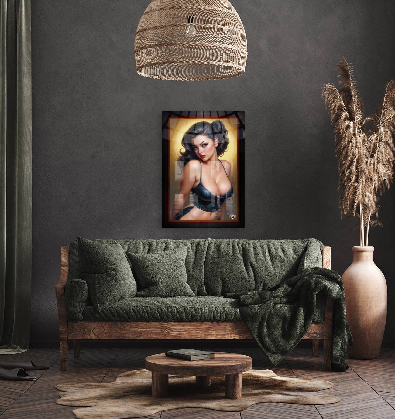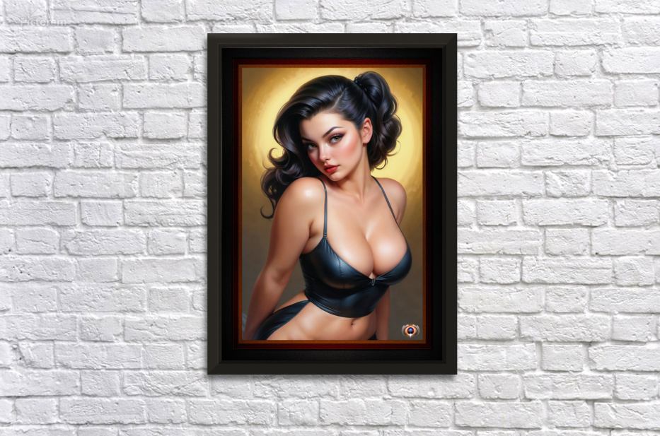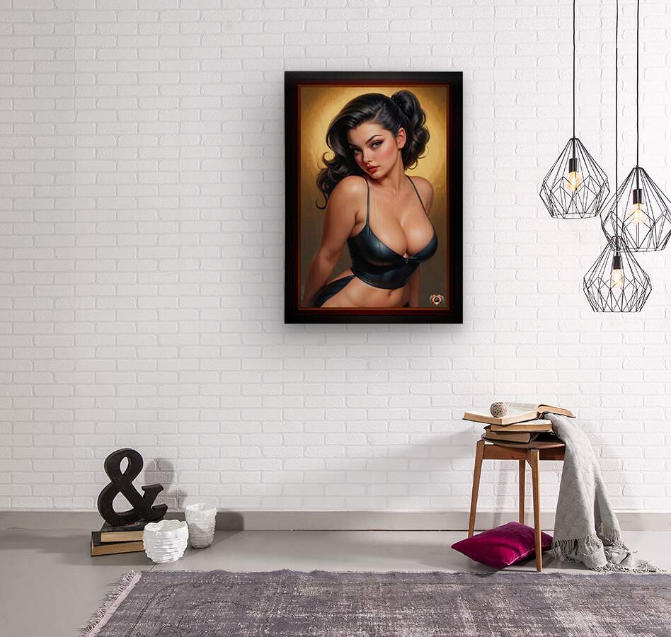 An Exquisite Raven Hair Pinup Girl Temptress Gorgeous AI Concept Art by Xzendor7 Wall Decor Frame