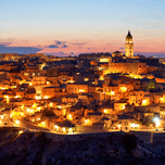 Matera Basilicata Italy. Cityscape. I sassi di Matera at sunset