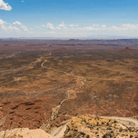 An expansive view of the desert landscape in Utah from Moki Dugway Scenic Backway on Route 261 just a little down from Muley Point. You can see part o...[+]