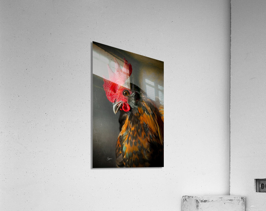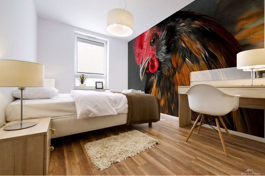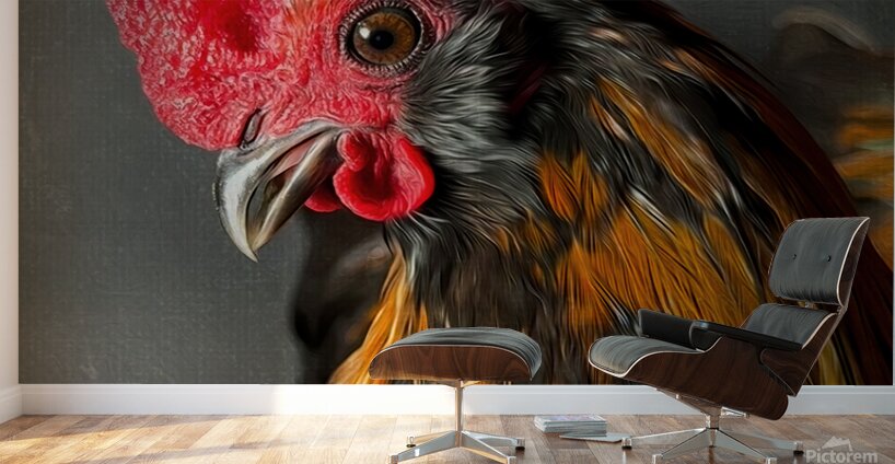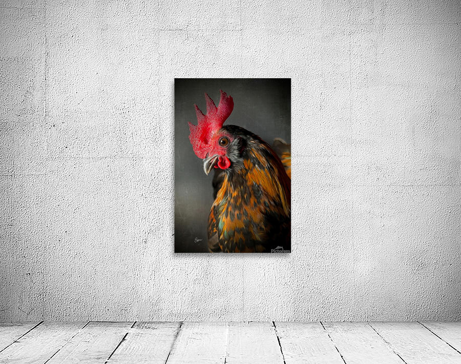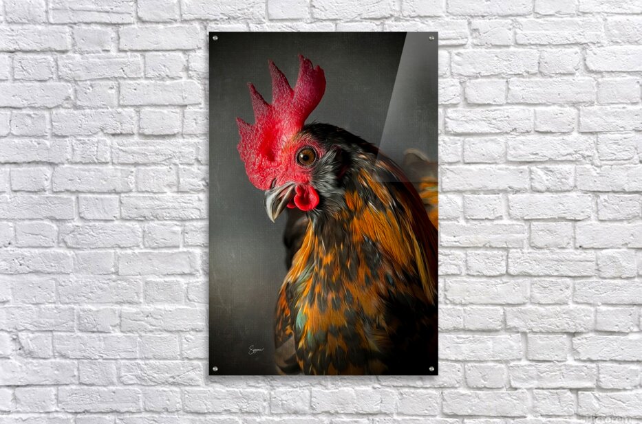 The artwork is a stunningly detailed and vividly expressive depiction of a rooster. The vibrant colors of the rooster's feathers—a blend of rich...[+]