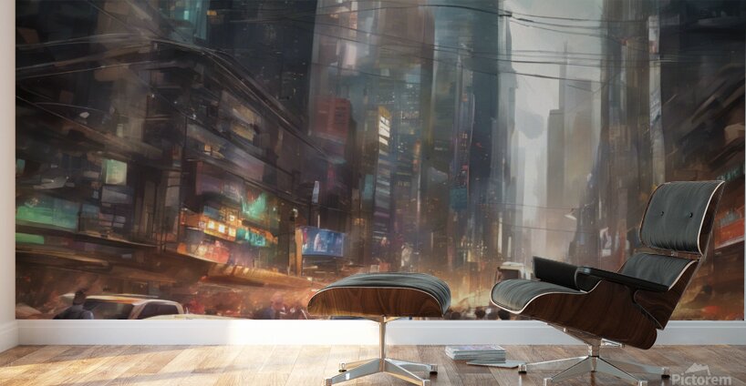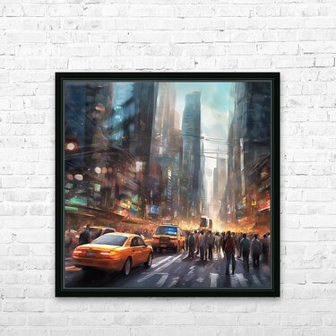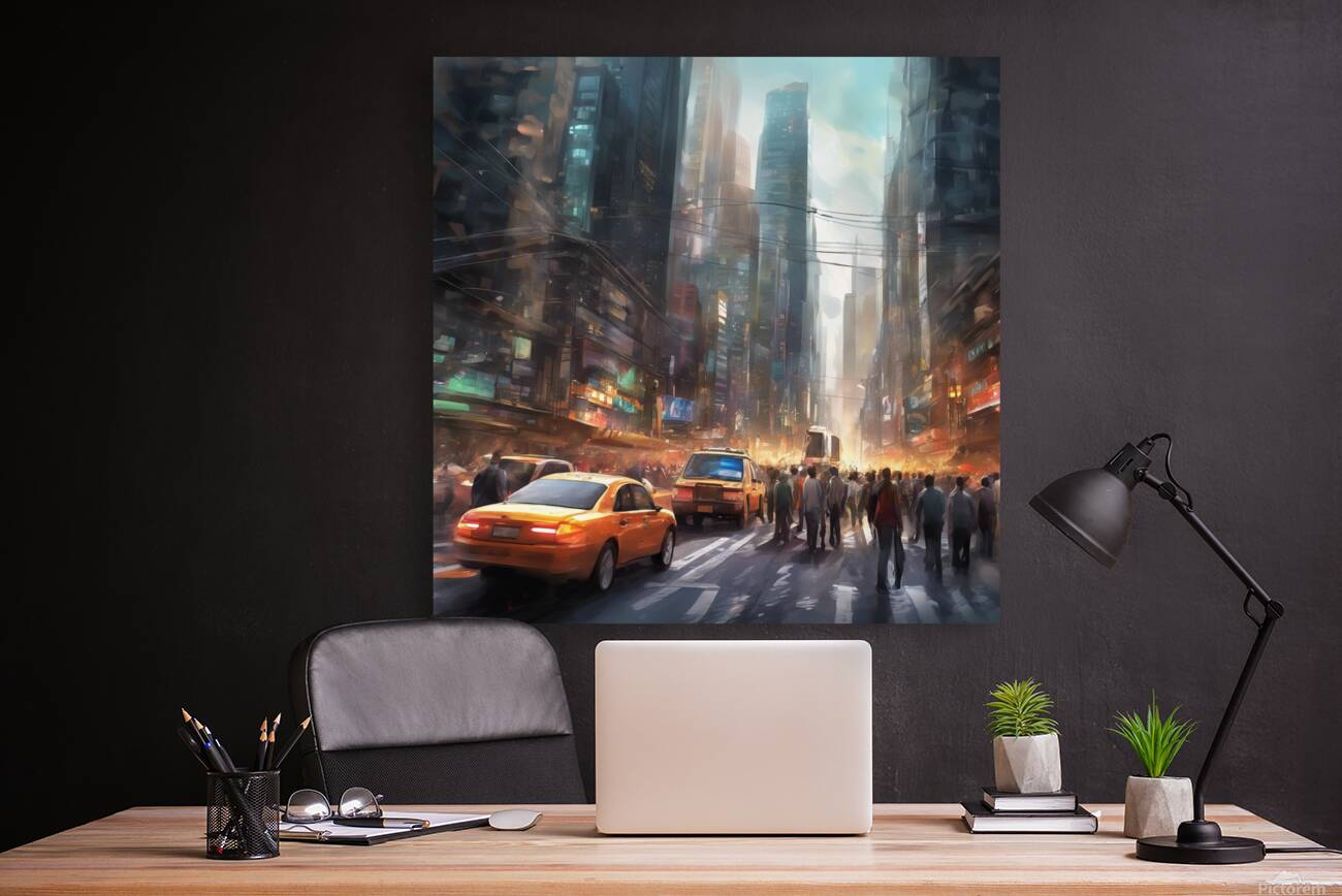 ABOUT THIS ARTWORK: 177753 VIBRANT AND BUSTLING CITY STREET WITH BUSY