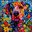 Puppy Loved - Flower Dog. A vibrant and colorful dog is depicted with a mosaic of flowers and abstract patterns covering its face and body. The backgr...[+]