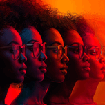 Solar Sisters - Lunar Beauty. A gradient from orange to red serves as the background for a repetitive profile view of five women, each depicted with a different vivid color overlay on their features. The women all wear identical clear-framed glasses, and their hair is styled in natural curls. Be 1st to procure thee best wall & mural art trends! Join V.I.P. Art Alerts - It's Free & takes just seconds! Hang the newest, conversation-starter Art Trends on your walls first & be.admired for your sophistication. Click the link: https://www.pictorem.com/quickaccount.html?followartist=UM6KBM8BLQ Vibrant, bold, colorful, belief-based, positivity-inspired digital art that evokes emotions. We aspire for precise creation, intricate vetting and high level post production techniques. #art #artforstaging #canadianart #artprints #artist #buyartonline #canadianartist #canadianartdaily #instaart #artprints #pictureoftheday #artoftheday #uniquegift #alberta #calgary #smartbuying #womeninart #lunar #solar #eclipse