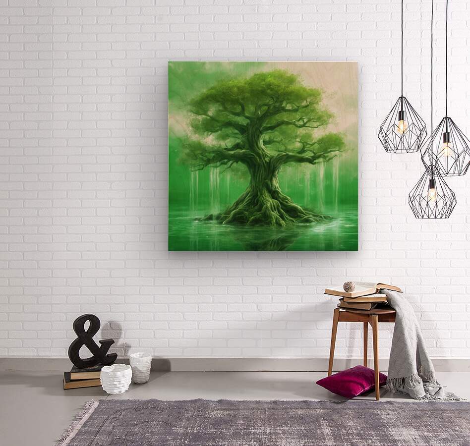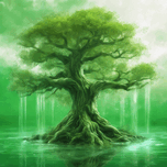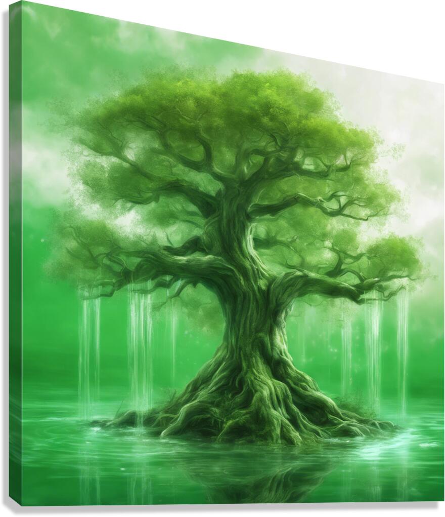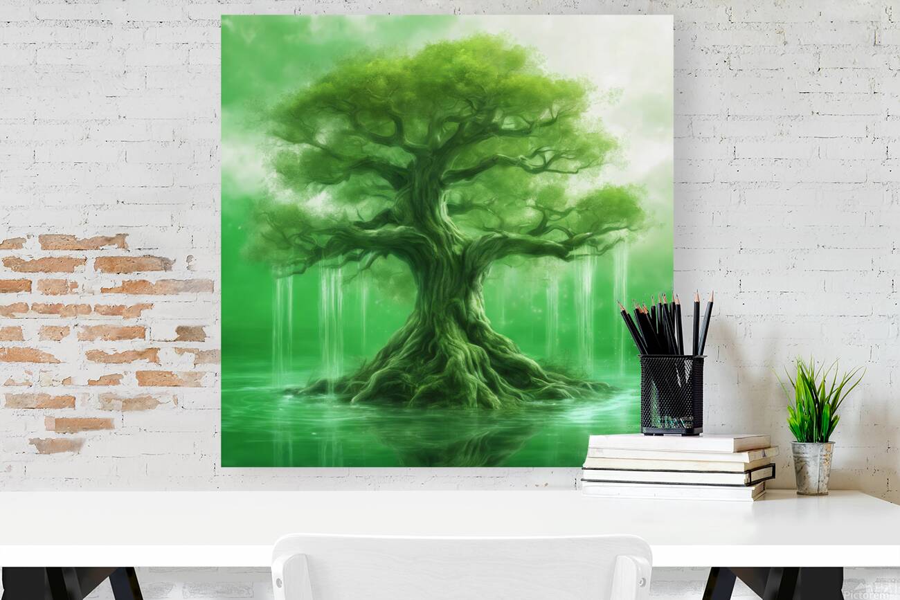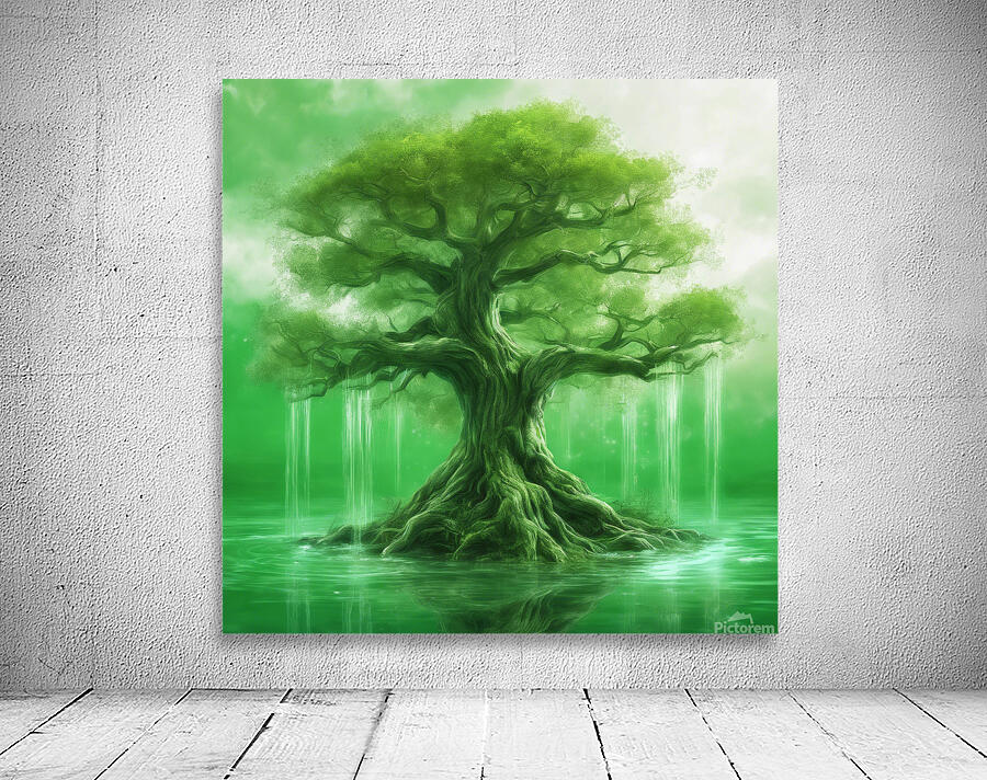 ABOUT THIS ARTWORK: TREE IN GREEN WITH WATER