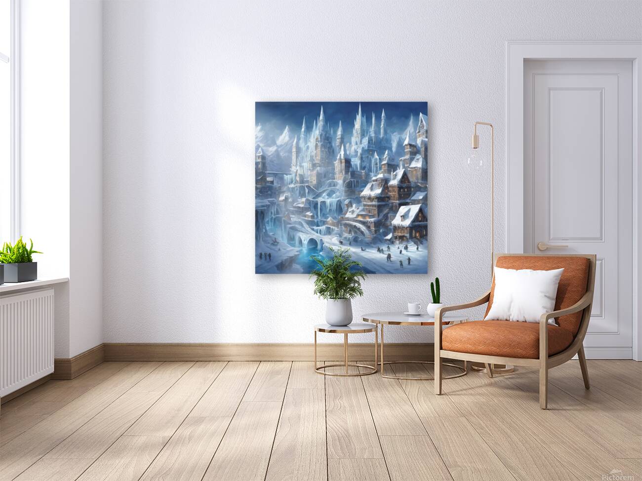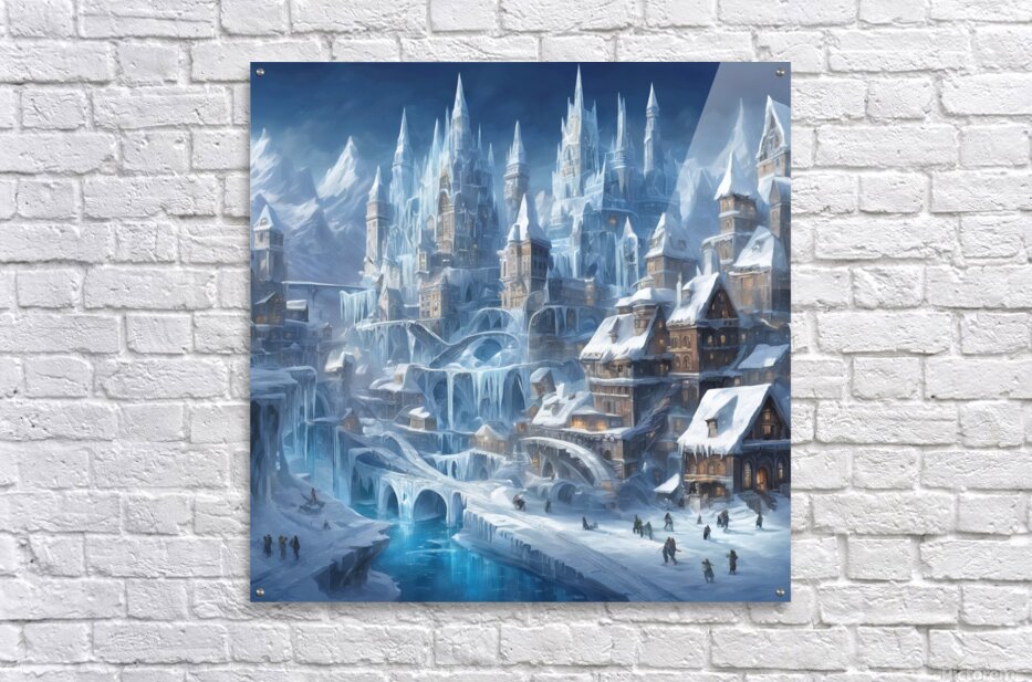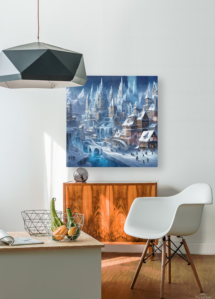 A city made of ice with ice slides frozen HD Sublimation Metal print with Decorating Float Frame (BOX)