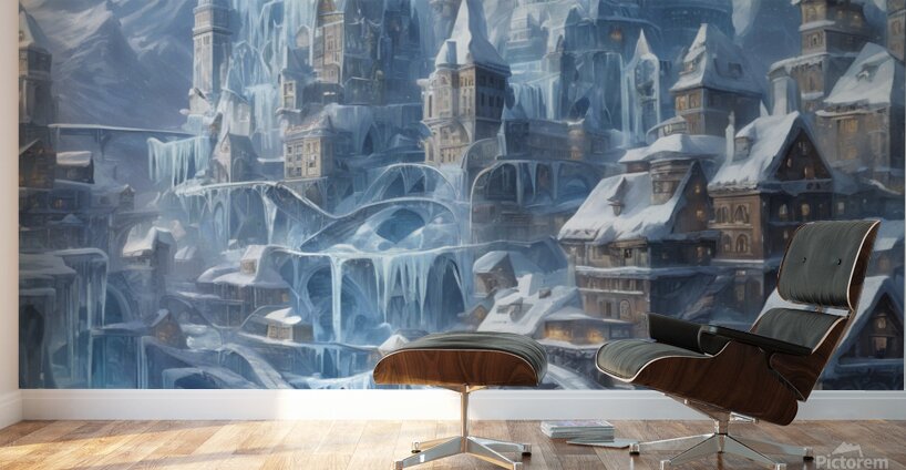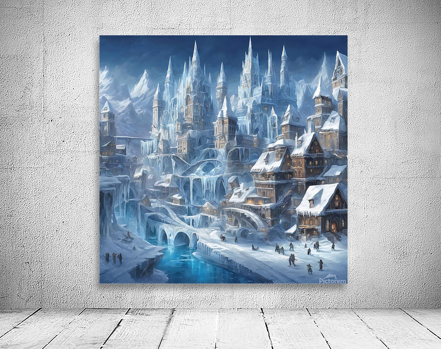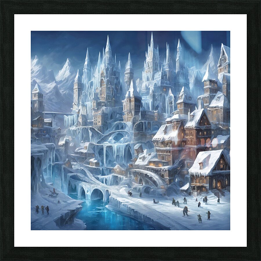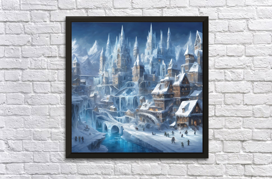 Get this artwork "A city made of ice with ice slides frozen" in a framed print.