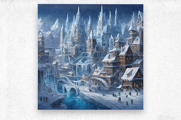 A city made of ice with ice slides frozen HD Sublimation Metal print