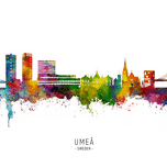 Watercolor art print of the skyline of Umeå Sweden Sverige