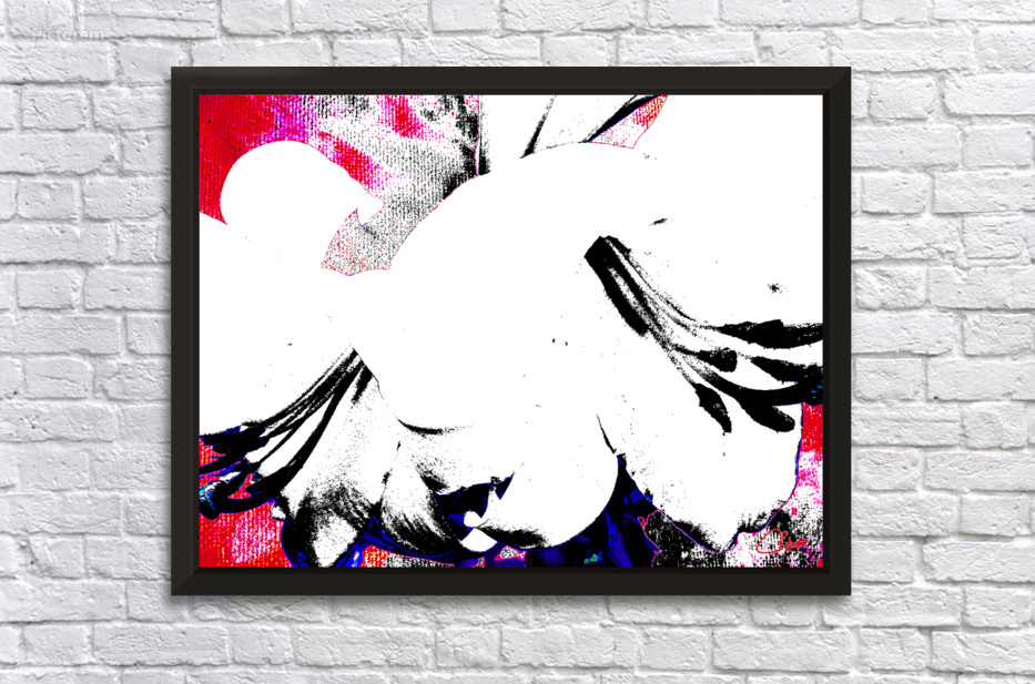 Once a close up photo of Lily flowers and a hand painted acrylic, laterally combined and digitally manipulated into a high-contrast design. A dynamic...[+]