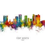 Watercolor art print of the skyline of Fort Worth Texas United States