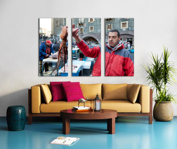 Piscaria the street daily market in Catania Sicily Italy. Fresh fish meat vegetables Canvas print