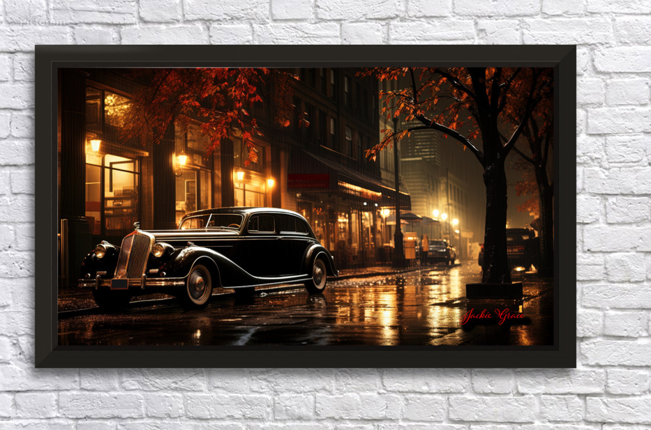Night Fall Vintage Car Scene 1 Wall Decor Frame