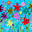 ABSTRACT VIBRANT FLORAL DISPLAY ON A BLUE BACKGROUND