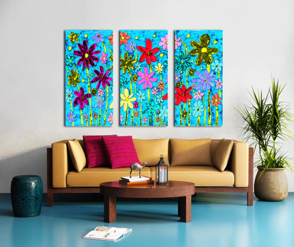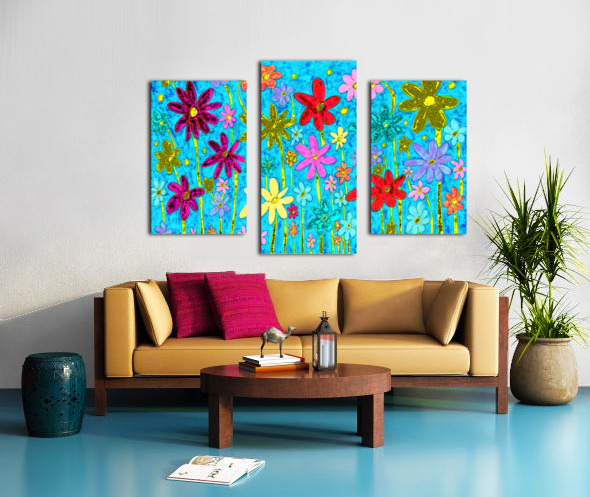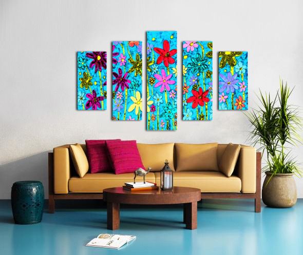 Abstract Vibrant Floral Display on a Blue Background Canvas print