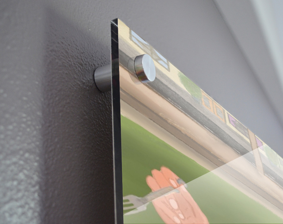 Printed to the edge - Ready to hang - provided with 4 premium polished aluminum stand off ( wall screws and mounting hardware provided )
