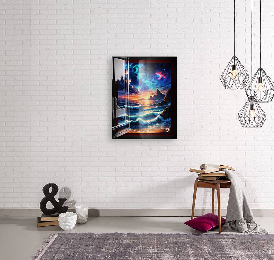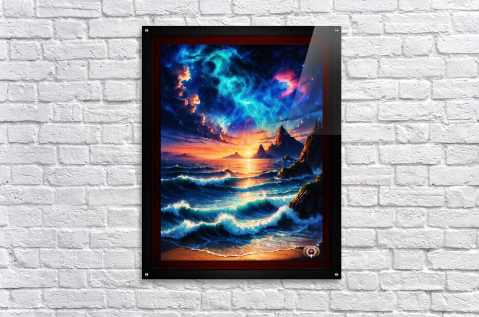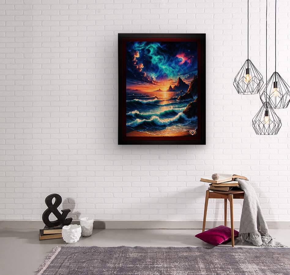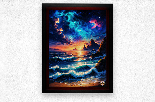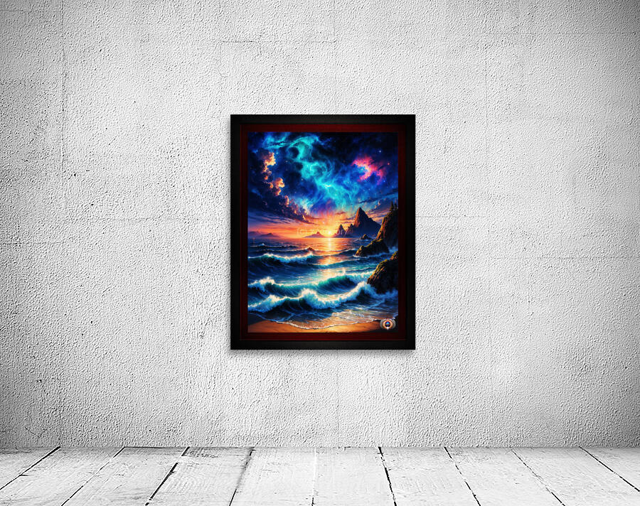 Mesmerizing Ocean Sunset and Aurora Borealis Fantasy Scene AI Concept Art by Xzendor7 Wall Decor Frame