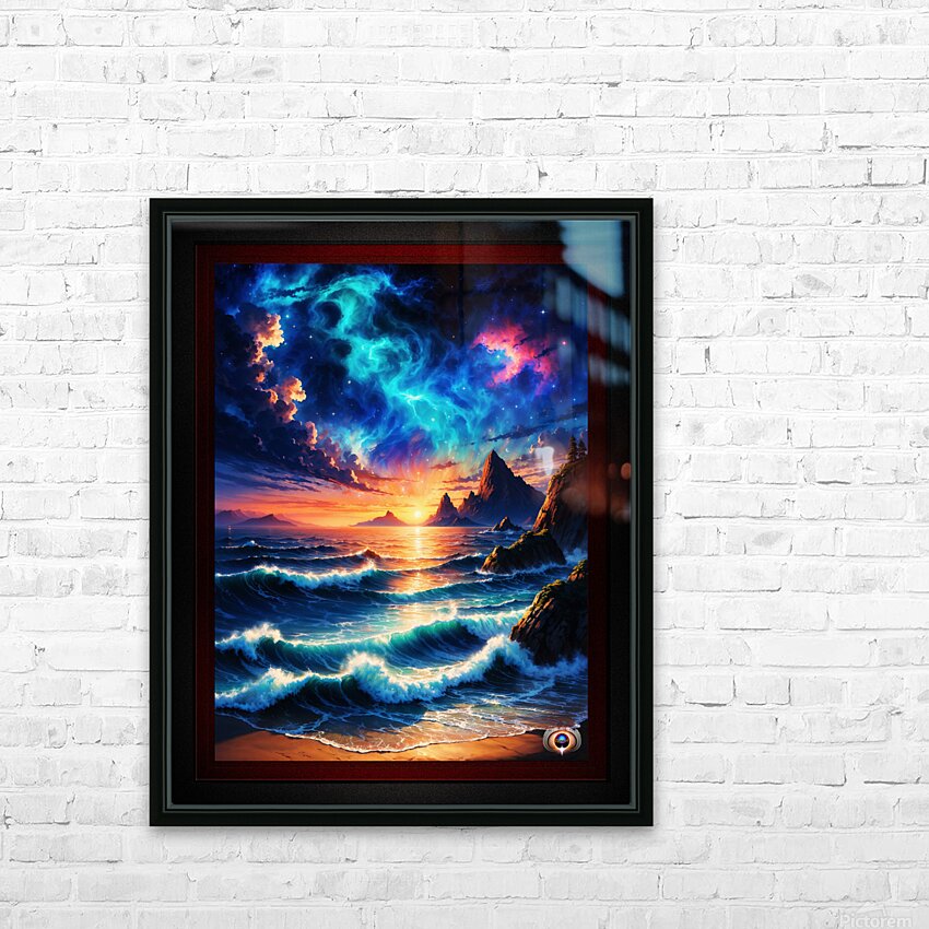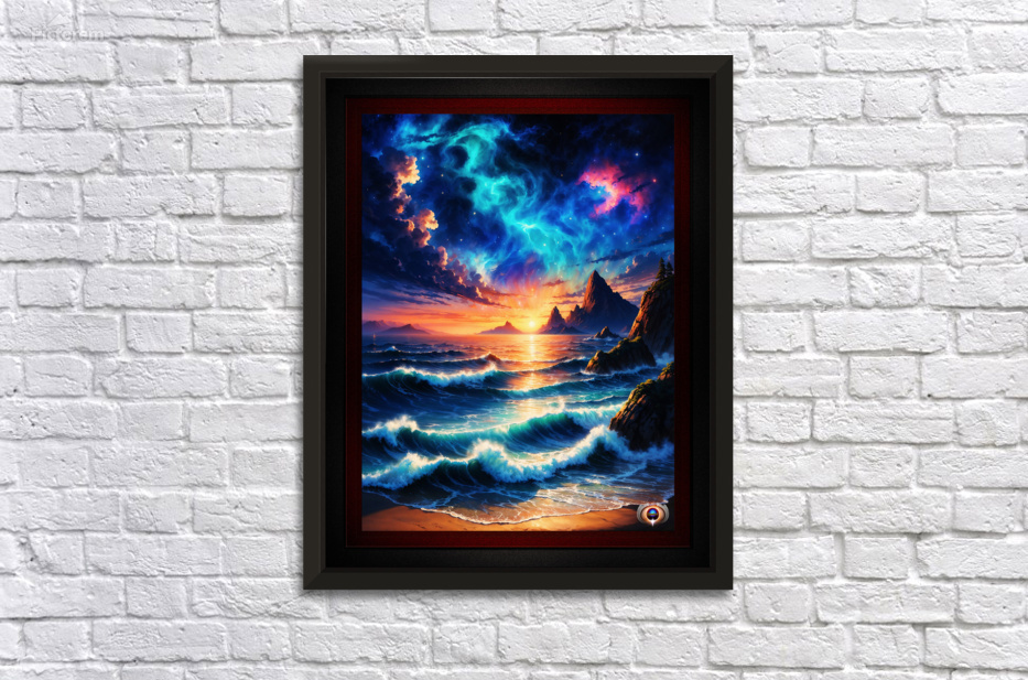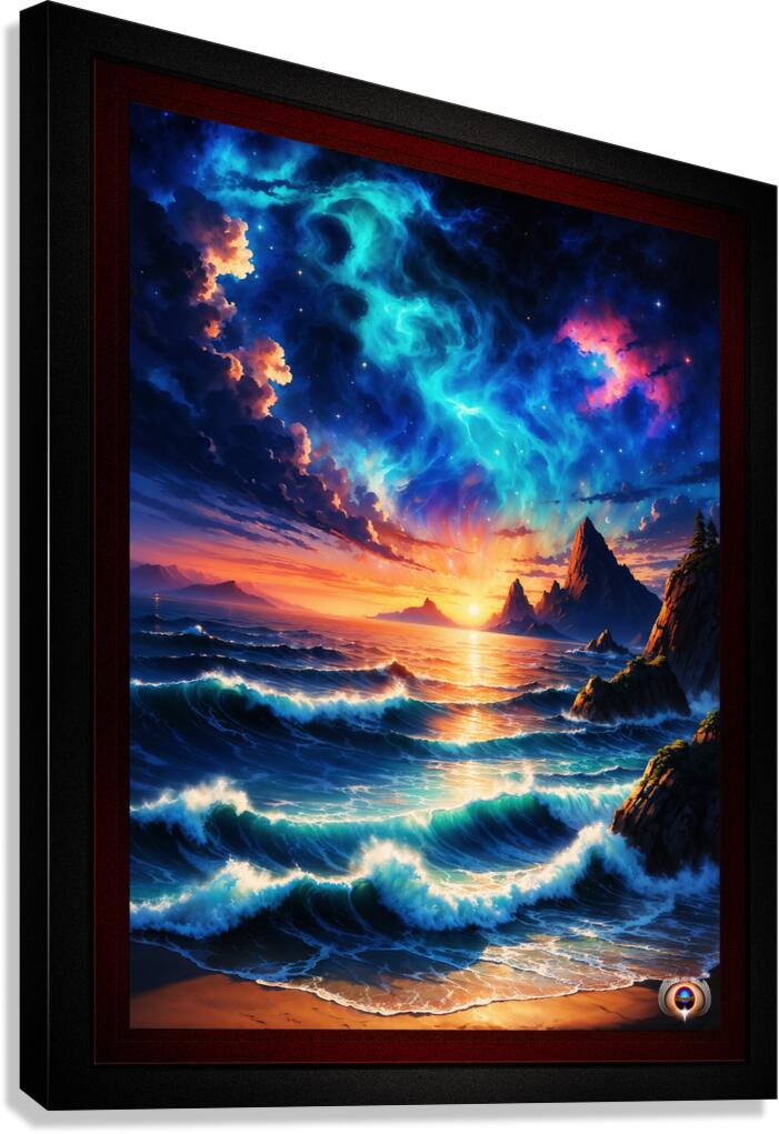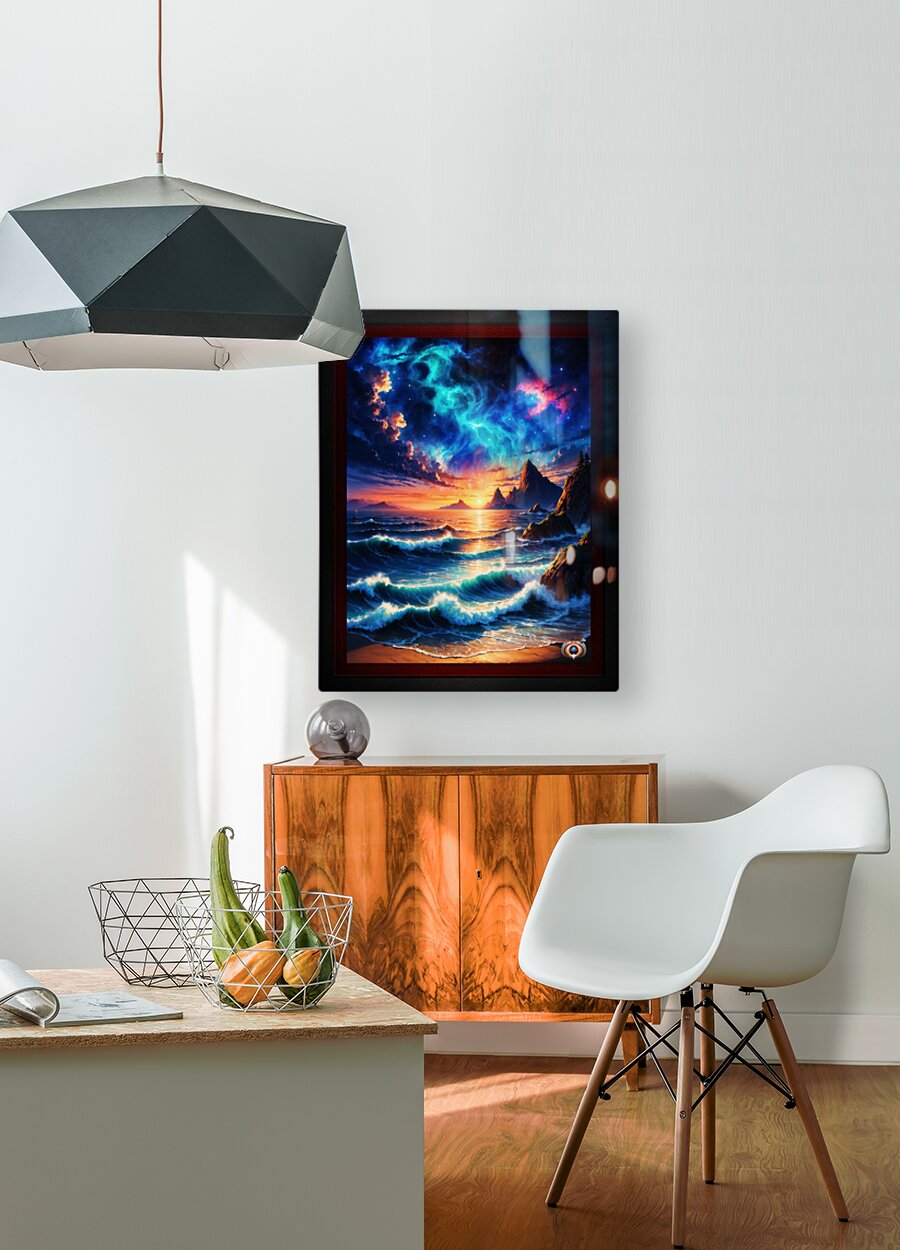 Mesmerizing Ocean Sunset and Aurora Borealis Fantasy Scene AI Concept Art by Xzendor7 Picture Frame Printing