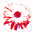 ABSTRACT RED AND BLUE DAISY ON A PALE ABSTRACT BACKGROUND