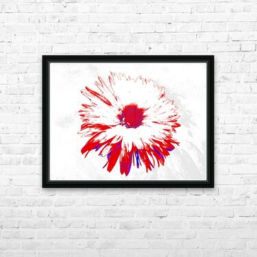Abstract Red and Blue Daisy on a Pale Abstract Background  Picture Frame Printing