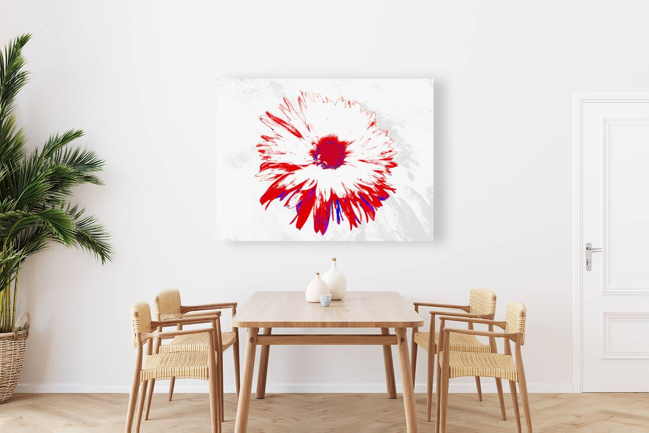 ABSTRACT RED AND BLUE DAISY ON A PALE ABSTRACT BACKGROUND  CATRIONA ROBERTS NATURE PHOTOGRAPHY AND DESIGNS  Canvas Print
