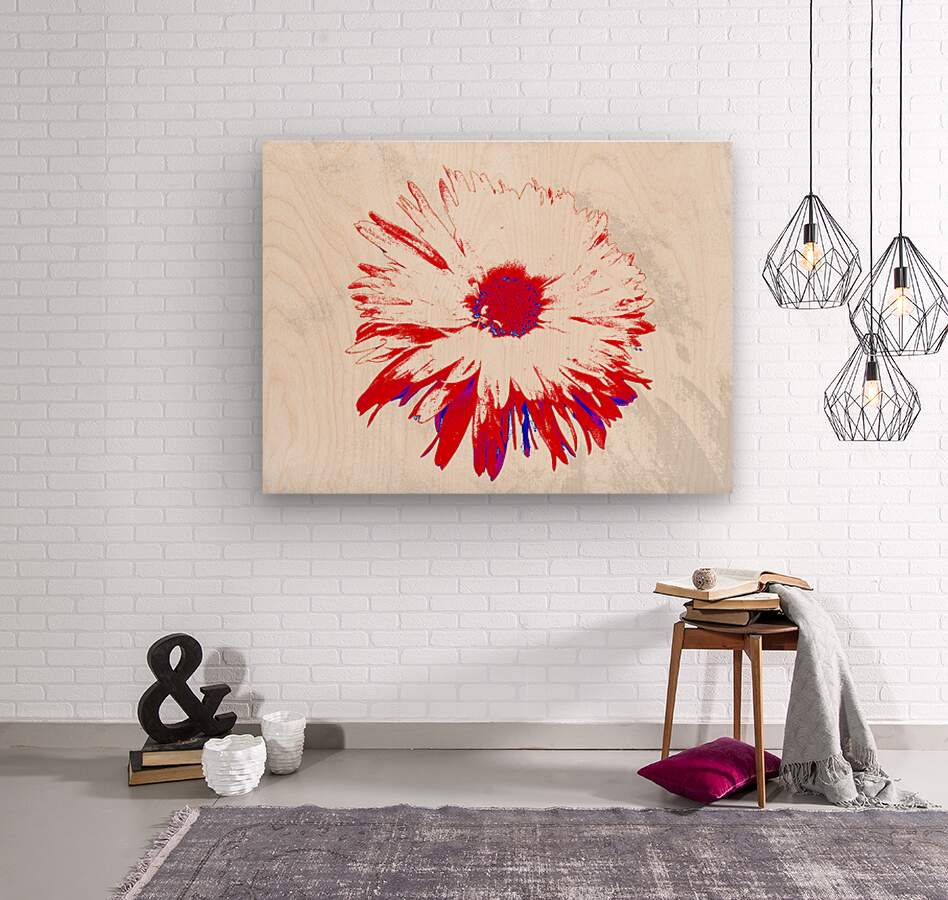 Abstract Red and Blue Daisy on a Pale Abstract Background  Wall Decor Frame