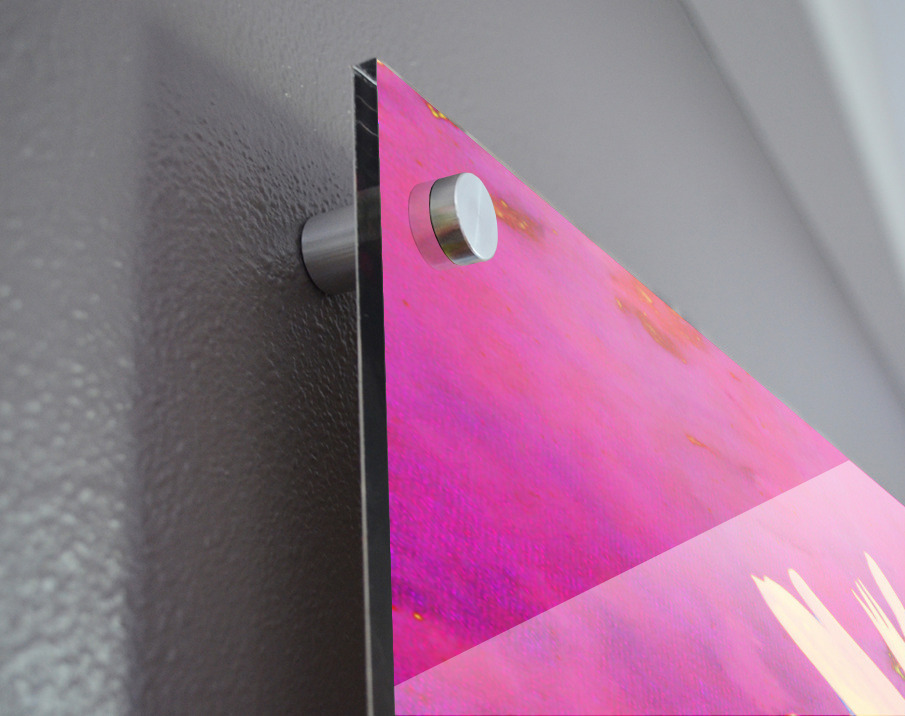 Printed to the edge - Ready to hang - provided with 4 premium polished aluminum stand off ( wall screws and mounting hardware provided )