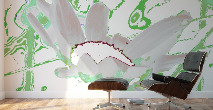 ABOUT THIS ARTWORK: ABSTRACT GREEN AND WHITE DAISY