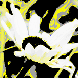 Originally a close up photo of a Daisy flower laterally digitally manipulated into a heavily stylized design showing a Daisy with its white petals and...[+]