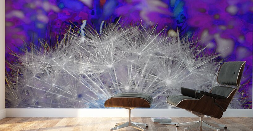 ABOUT THIS ARTWORK: ABSTRACT COLOURED DANDELION SEEDS CLOSE UP