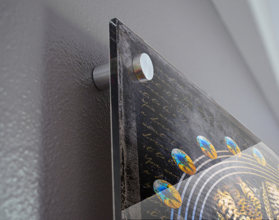 Printed to the edge - Ready to hang - provided with 4 premium polished aluminum stand off ( wall screws and mounting hardware provided )