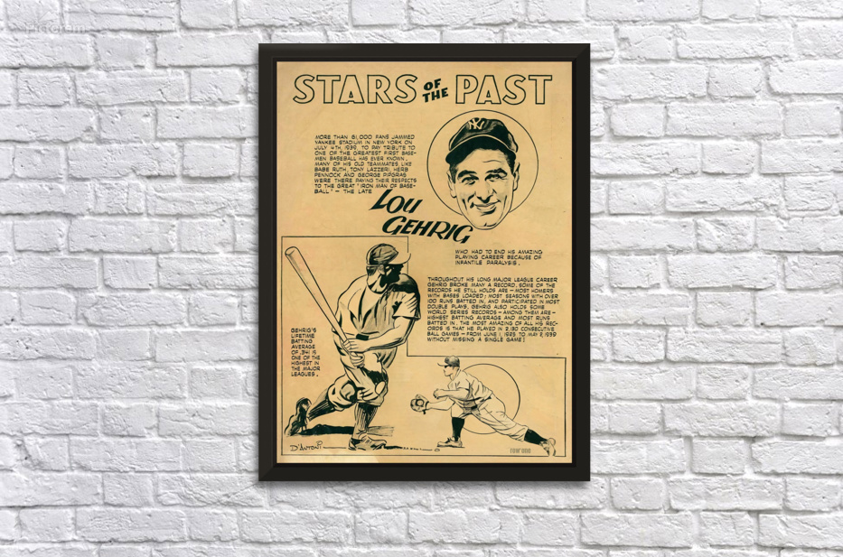 Lou Gehrig Cartoon Art Wall Decor Frame