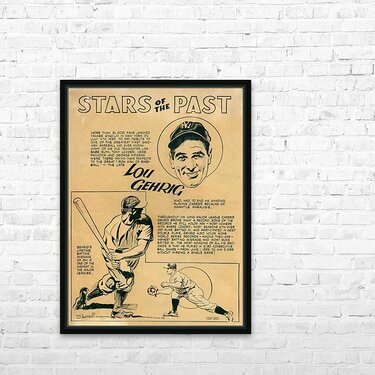 Stars of the Past | Lou Gehrig New York Yankees Star | Row One Brand | Over 14.7k Historic Sports Prints | Row One's authentic vintage Lou Gehrig "Stars of the Past" baseball cartoon art will look fantastic in your game room or office.