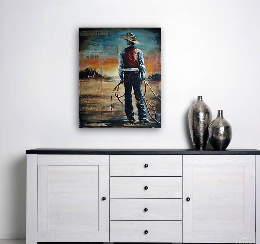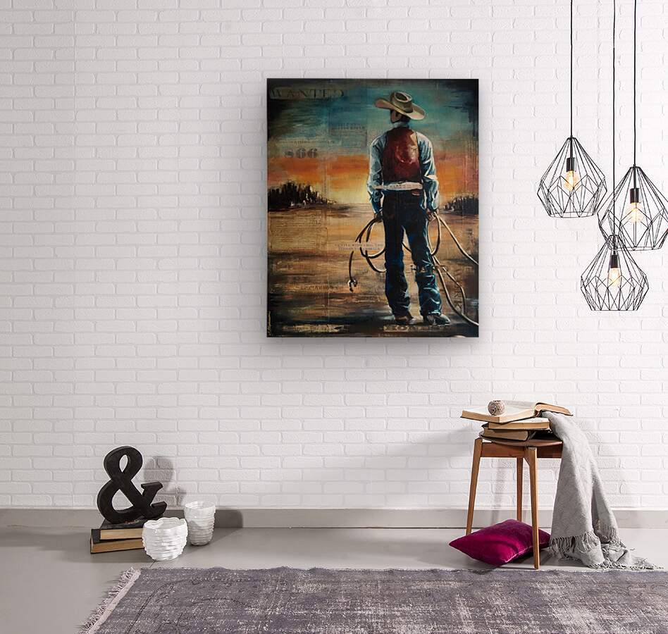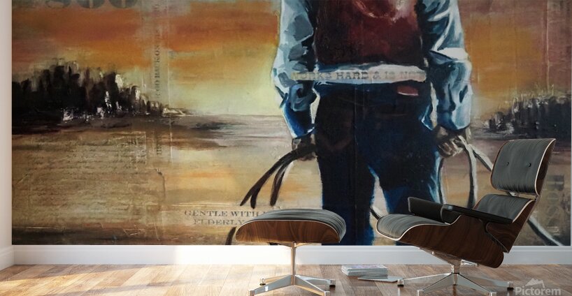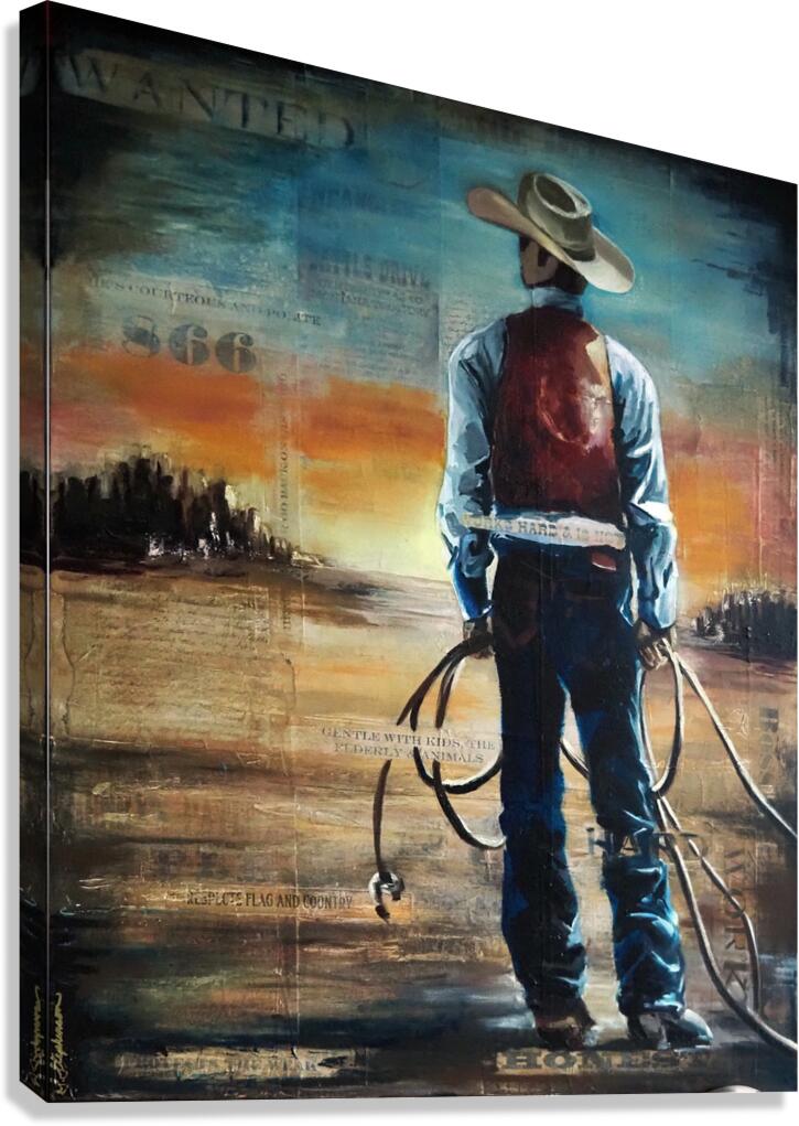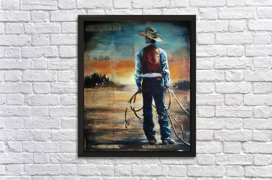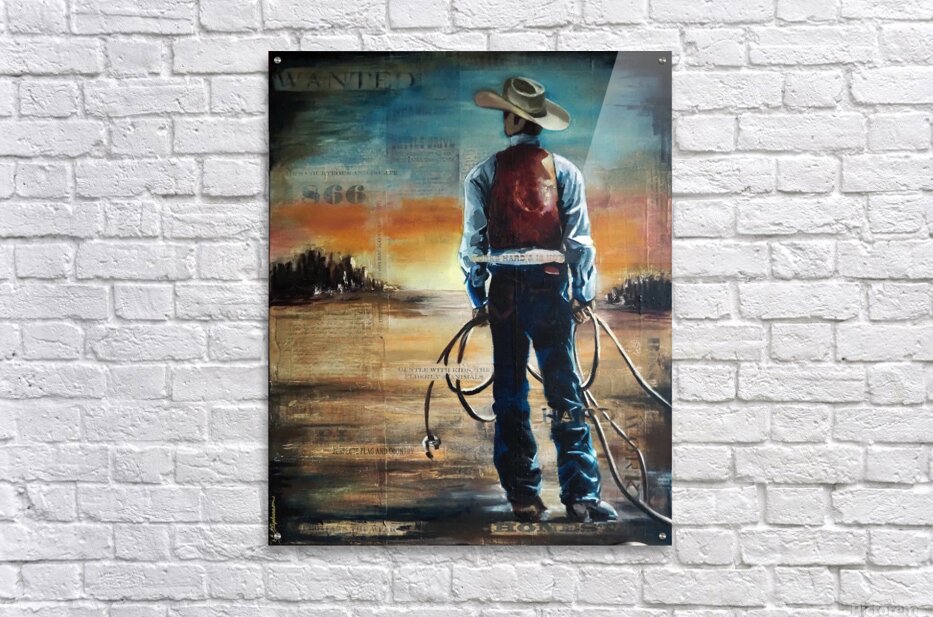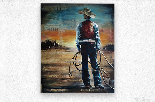 This is a mixed media collage feature collage background made in the artist's own hand. The Cowboy serves as the inaugural painting in a series highlighting admirable masculinity. Get your own print today!