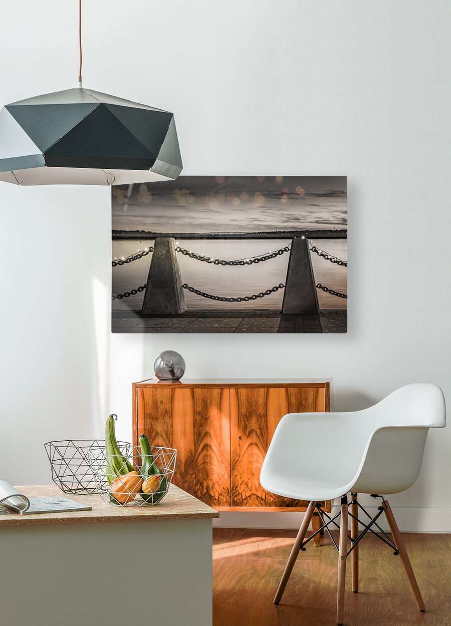 It's easy to get lost in memories and dreams here. The Christmas lights were still on display in January at the end of the walk strung over the iron rings and concrete piers that form the fence along the walking path. Stay and enjoy a piece this view sings to me.