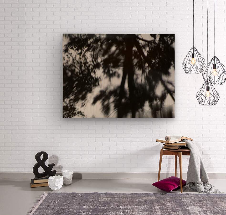 An abstract photographic pattern is created by blurred water reflections, as tree branches create dark silhouettes against a light background. The int...[+]