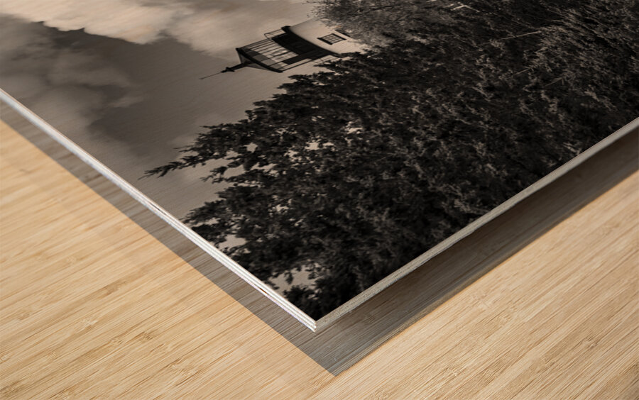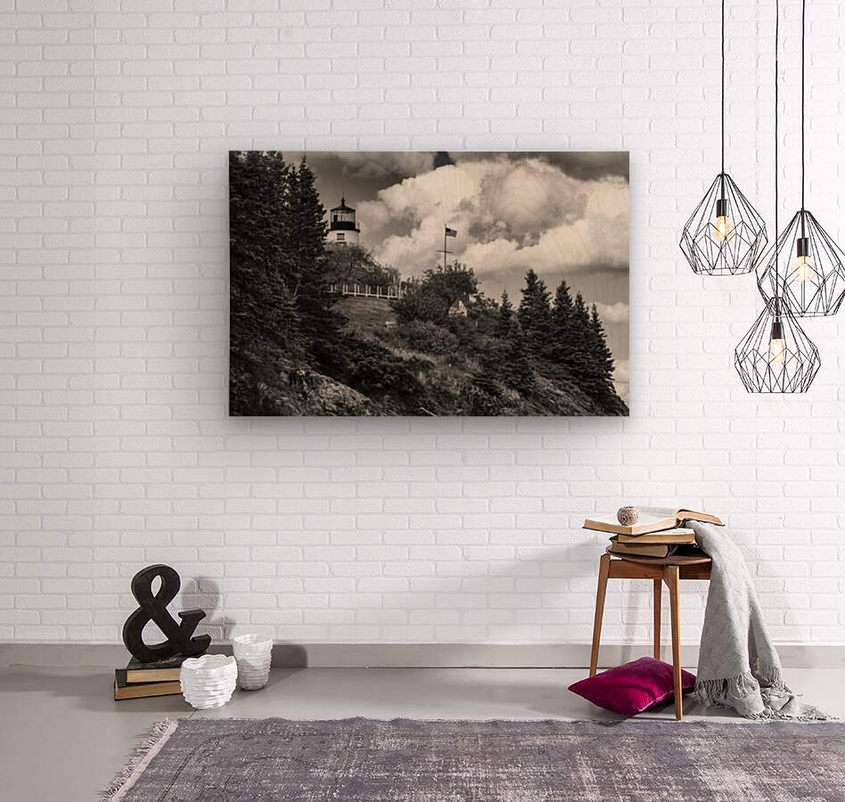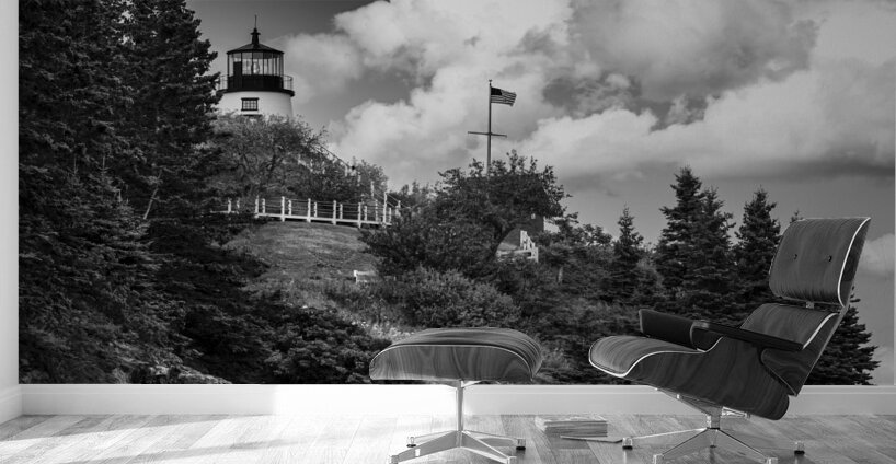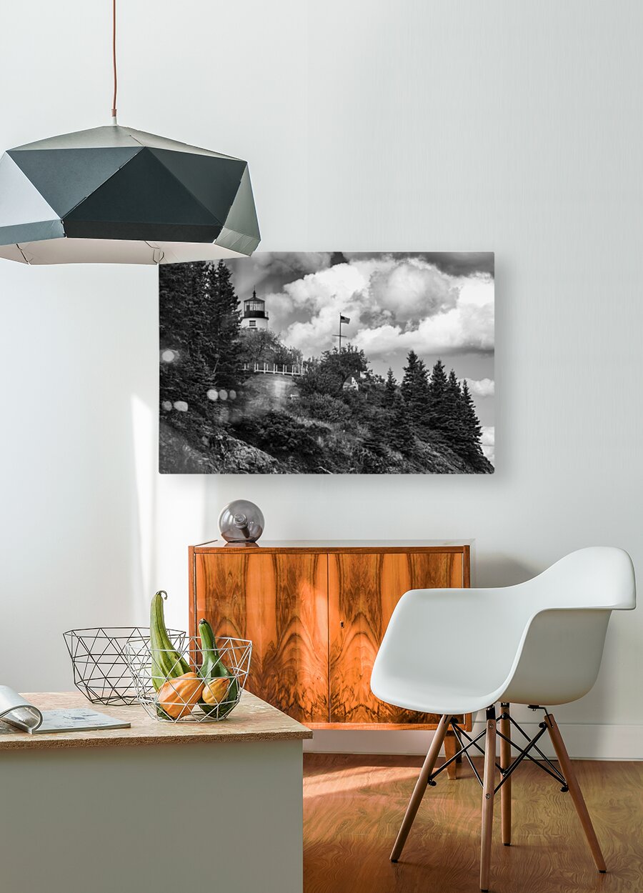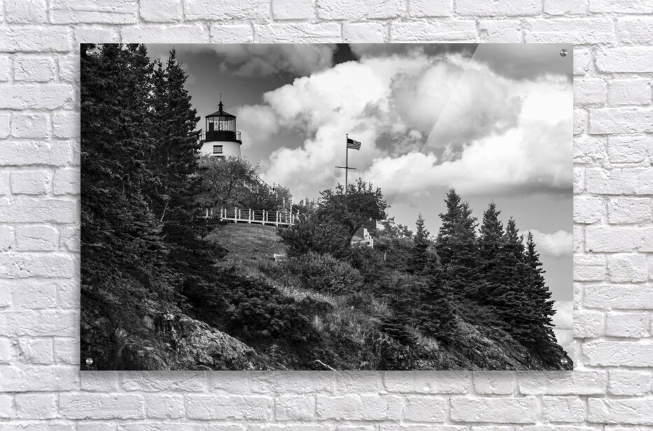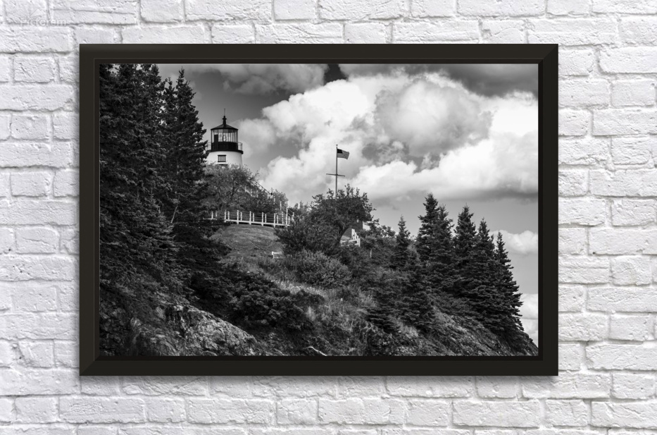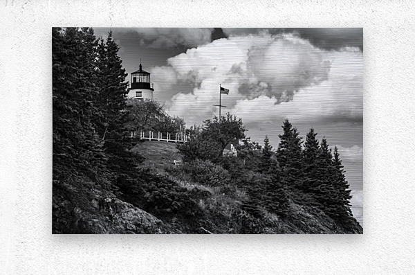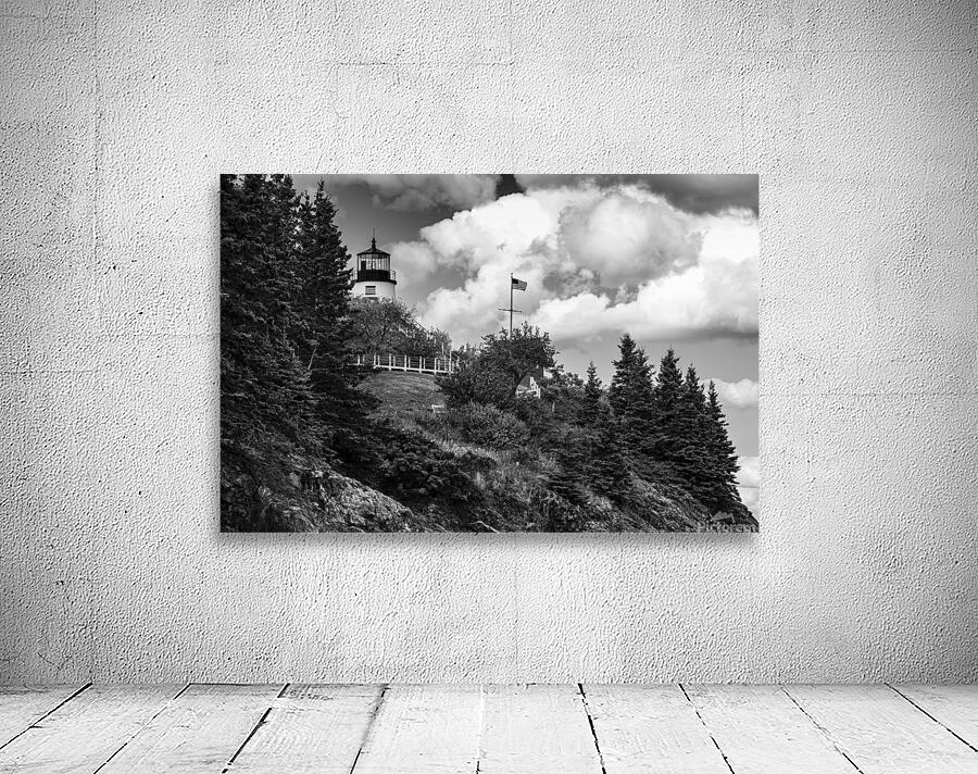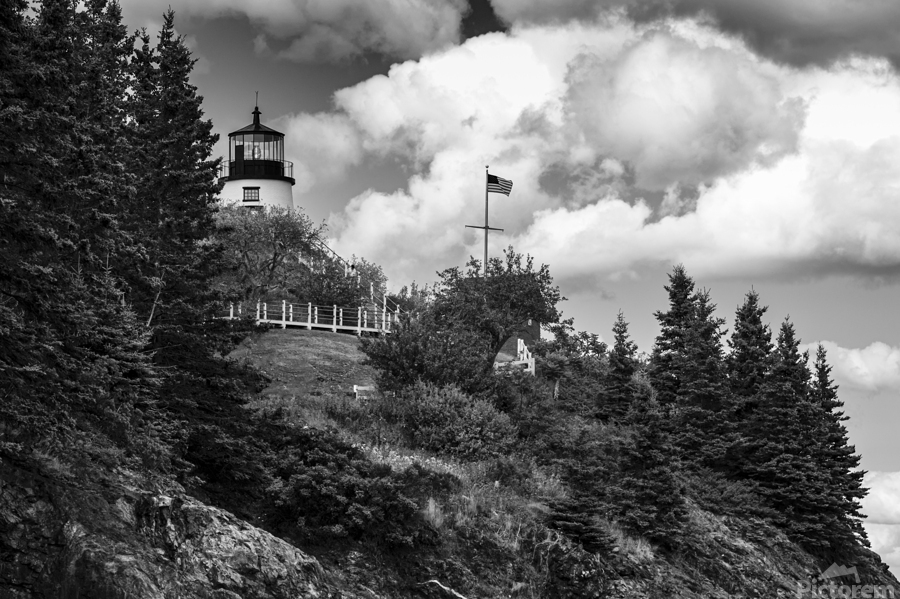 ABOUT THIS ARTWORK: OWLS HEAD LIGHT OVER ROCKY CLIFFS IN MIDCOAST MAINE - B&W
