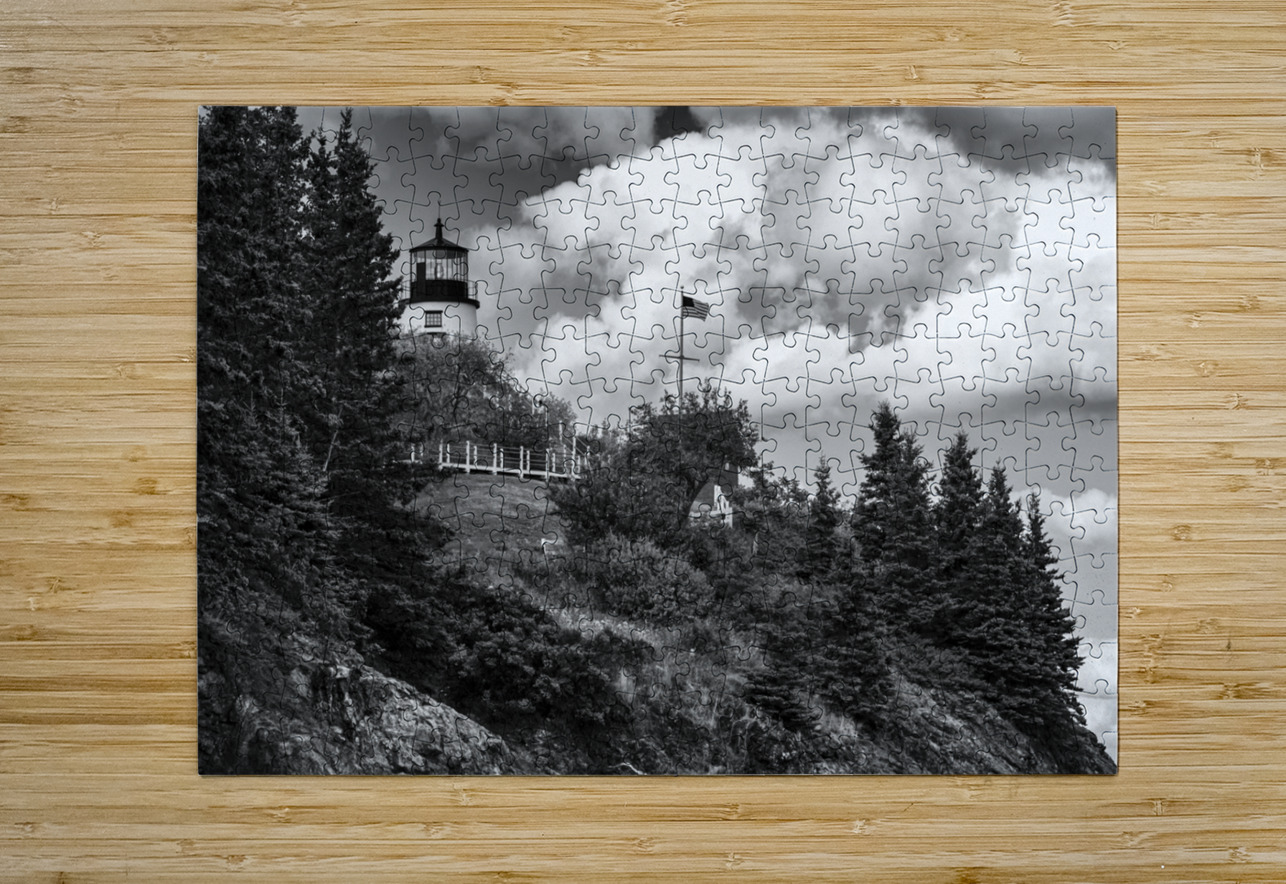 Owls Head Light Over Rocky Cliffs in Midcoast Maine - B&W Allan Wood Puzzle printing