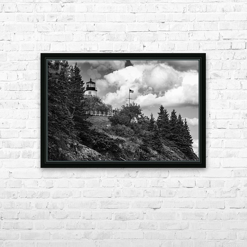 Owls Head Light Over Rocky Cliffs in Midcoast Maine - B&W Wall Decor Frame