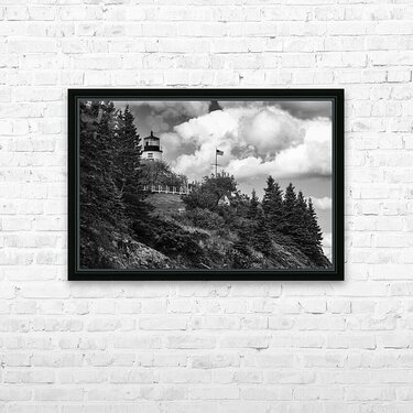 Get this artwork "Owls Head Light Over Rocky Cliffs in Midcoast Maine - B&W" in a framed print.