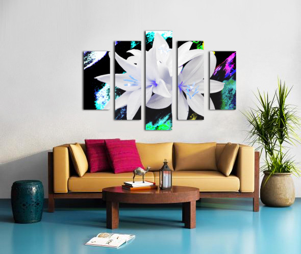 Abstract Trio of Lilies on a Distressed Coloured Abstract Background Canvas print