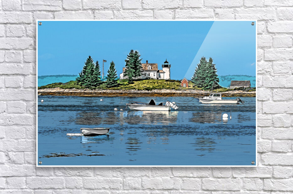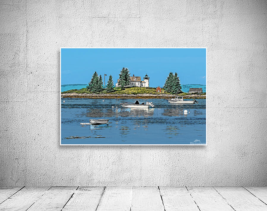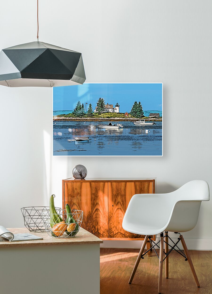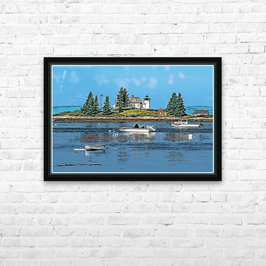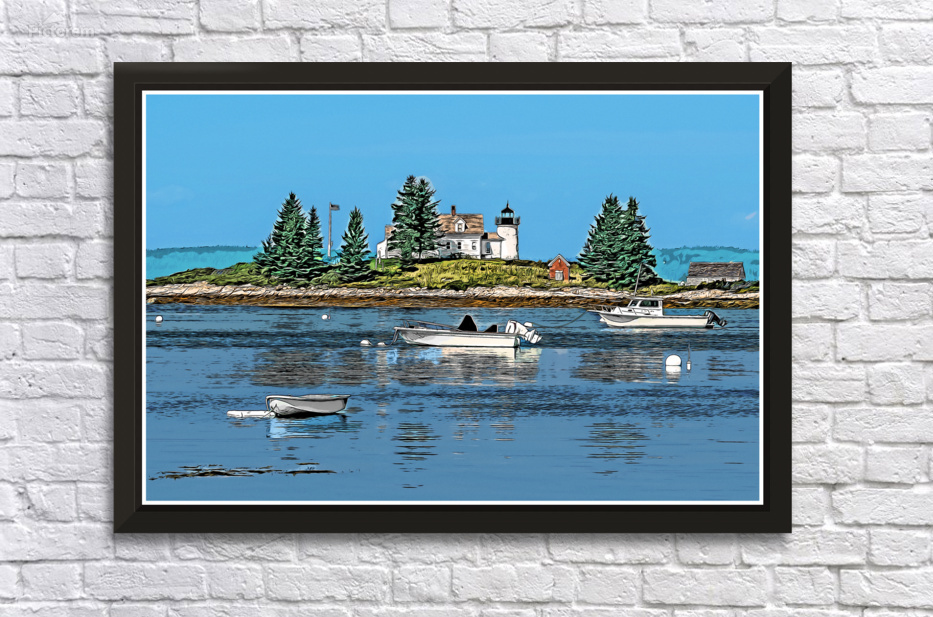 Boats Anchored by Pumpkin Island Light in Maine - Illus. Wall Decor Frame