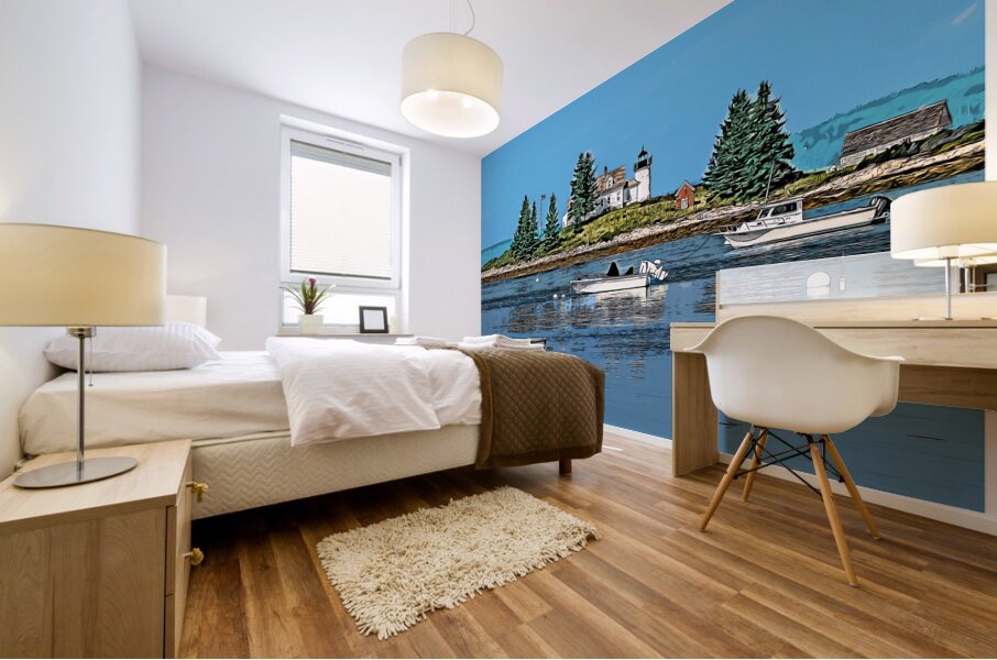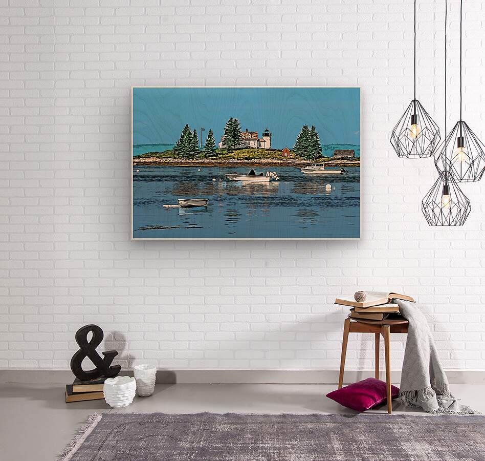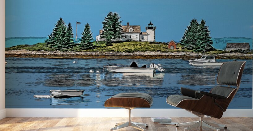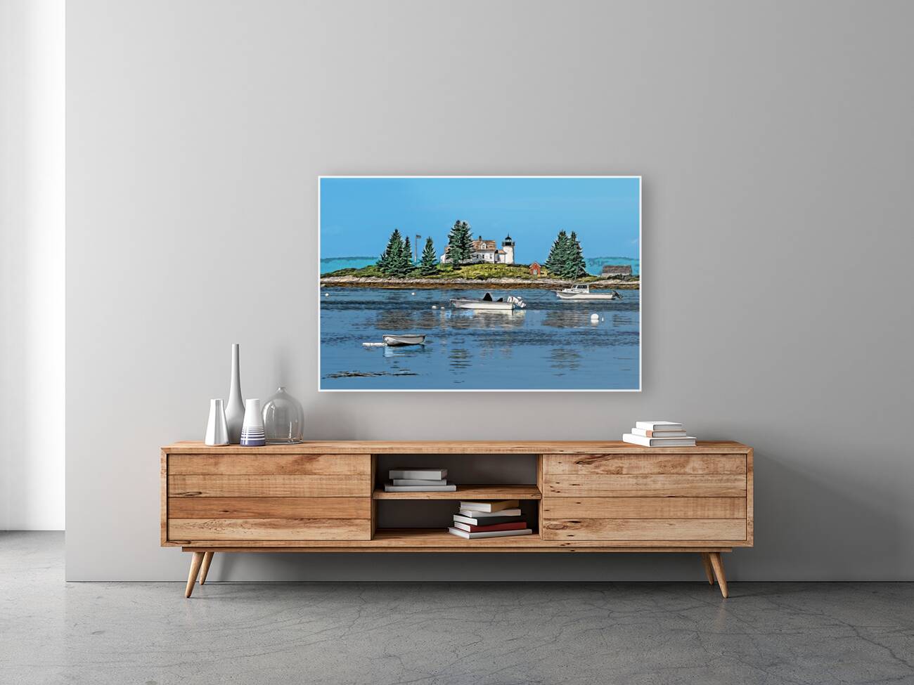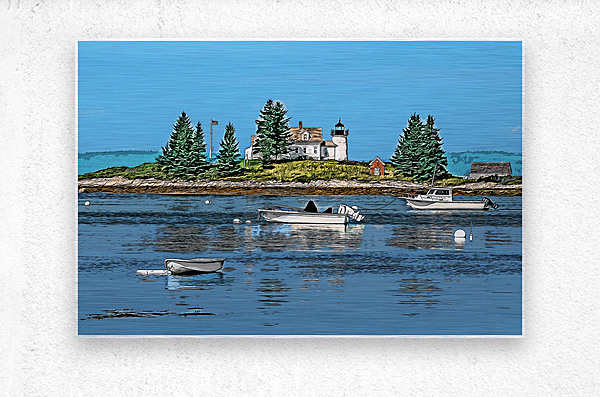 Boats Anchored by Pumpkin Island Light in Maine - Illus. Wall Decor Frame