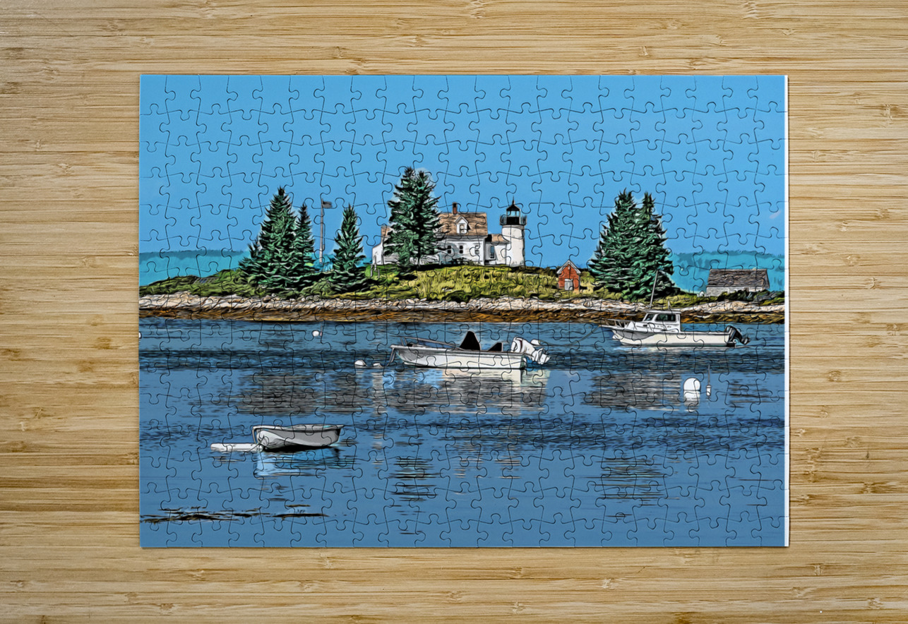 Boats Anchored by Pumpkin Island Light in Maine - Illus. Allan Wood Puzzle printing
