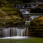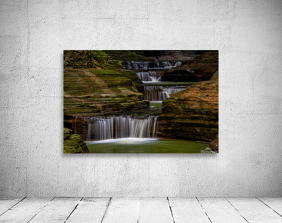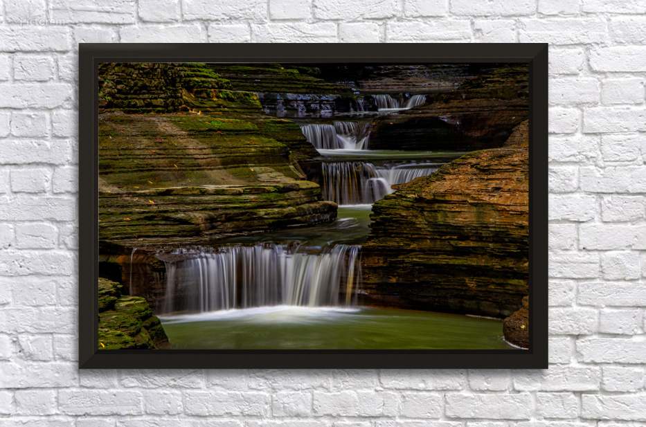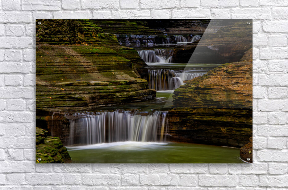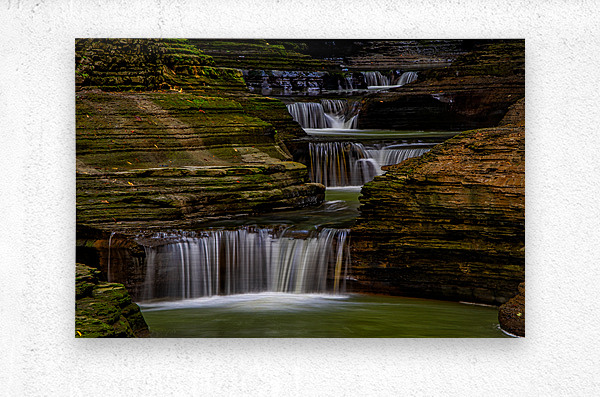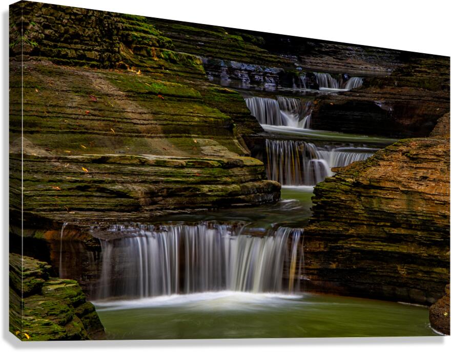 A series of small waterfalls creates a stairway effect in beautiful Watkins Glen State Park. The amazing parks Gorge Grail is just two miles long but it is filled with stunning views created when Glen Creek cut a deep gorge on its way to Seneca Lake. It is one of the most-famous Upstate New York attractions. Prints are available as archival prints metal prints canvas gallery wraps and acrylic prints