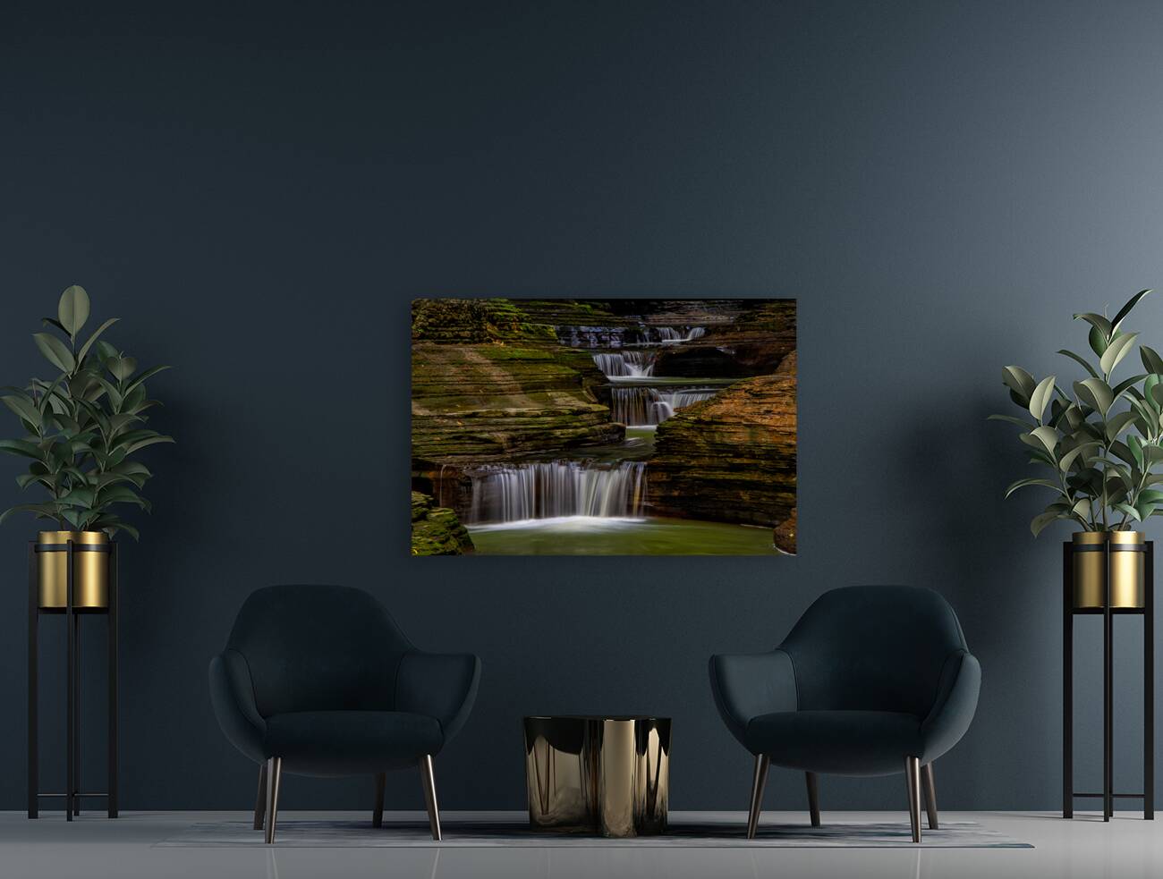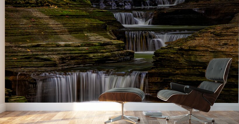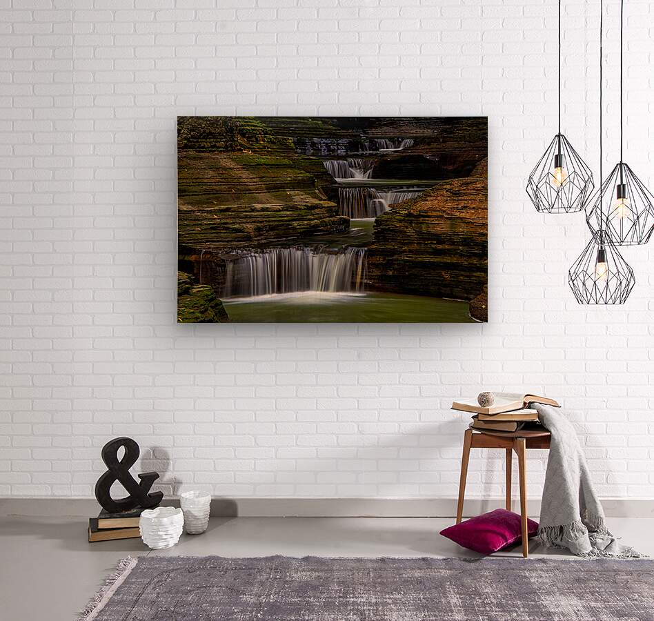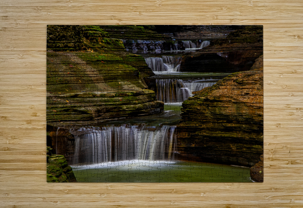 A series of small waterfalls creates a stairway effect in beautiful Watkins Glen State Park. The amazing parks Gorge Grail is just two miles long but it is filled with stunning views created when Glen Creek cut a deep gorge on its way to Seneca Lake. It is one of the most-famous Upstate New York attractions. Prints are available as archival prints metal prints canvas gallery wraps and acrylic prints