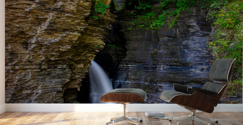 Visitors to Watkins Glen State Park begin with a spiraling walk up to a suspension bridge over a roaring waterfall. it is just the first of 19 waterfalls in the beautiful gorge and holds promises of amazing scenery throughout the Upstate New York Finger Lakes state park. Prints of this amazing image are available in various sizes and media including fine-art prints metal prints canvas gallery wraps and acrylic prints.