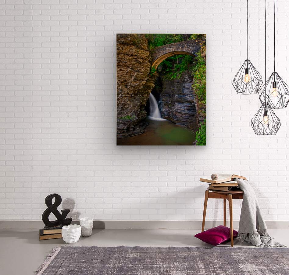 Watkins Glen Suspension Bridge cascade Wood print