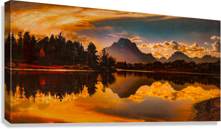 Ox Bow Bend and Mt Moran at Sunset Canvas print